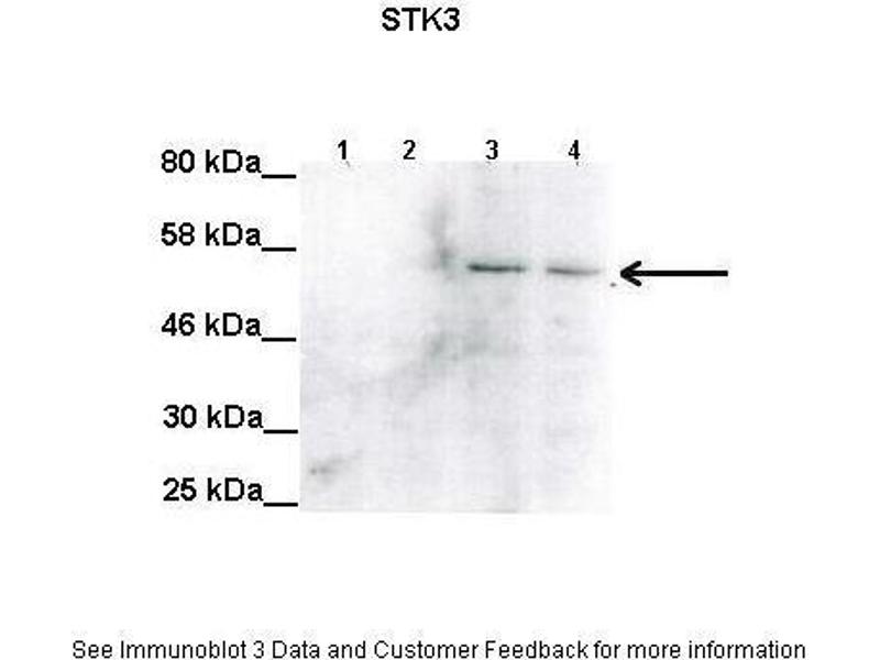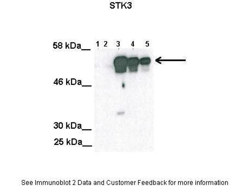 - The immunogen is a synthetic peptide directed towards the C terminal region of human STK3