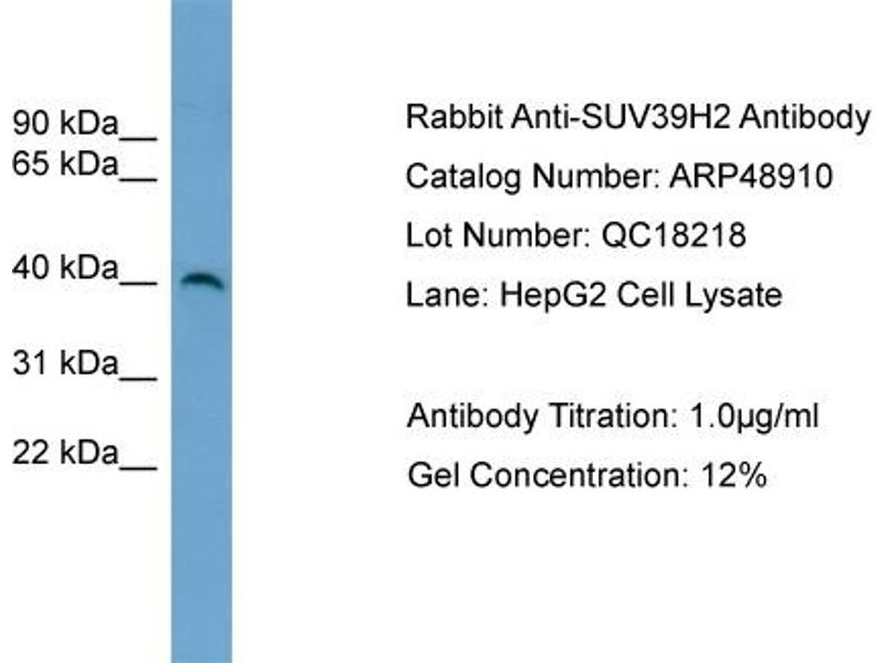 - This is a rabbit polyclonal antibody against SUV39H2. It was validated on Western Blot using a cell lysate as a positive control.