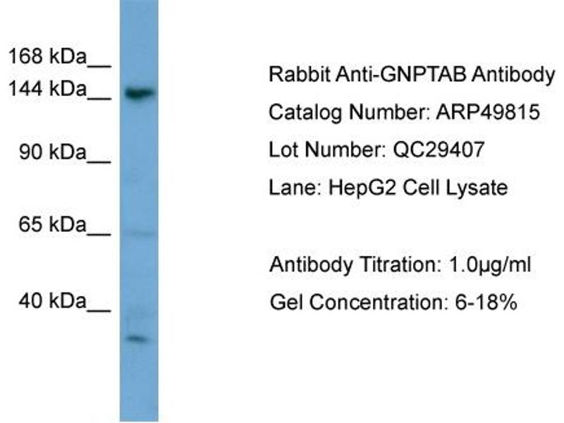 - This is a rabbit polyclonal antibody against GNPTAB. It was validated on Western Blot.