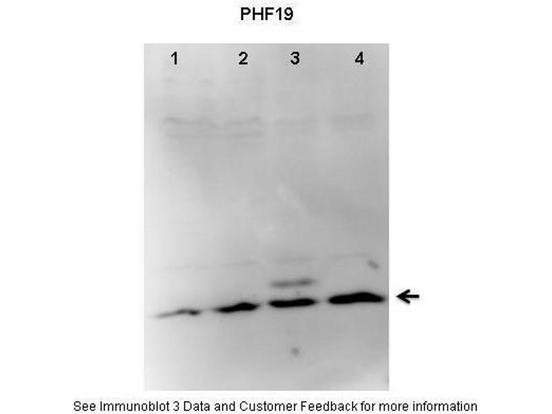 - This is a rabbit polyclonal antibody against PHF19. It was validated on Western Blot using a cell lysate as a positive control.