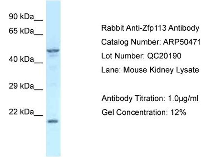 - This is a rabbit polyclonal antibody against Zfp113. It was validated on Western Blot.