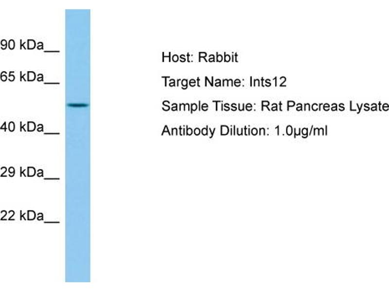Ints12 is a component of the Integrator complex, a complex involved in the small nuclear RNAs (snRNA) U1 and U2 transcription and in their 3'-box-dependent processing. The Integrator complex is associated with the C-terminal domain (CTD) of RNA polymerase II largest subunit (POLR2A) and is recruited to the U1 and U2 snRNAs genes. Alias Symbols: Phf22 Protein Size: 461