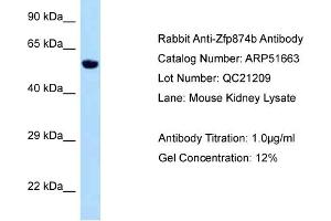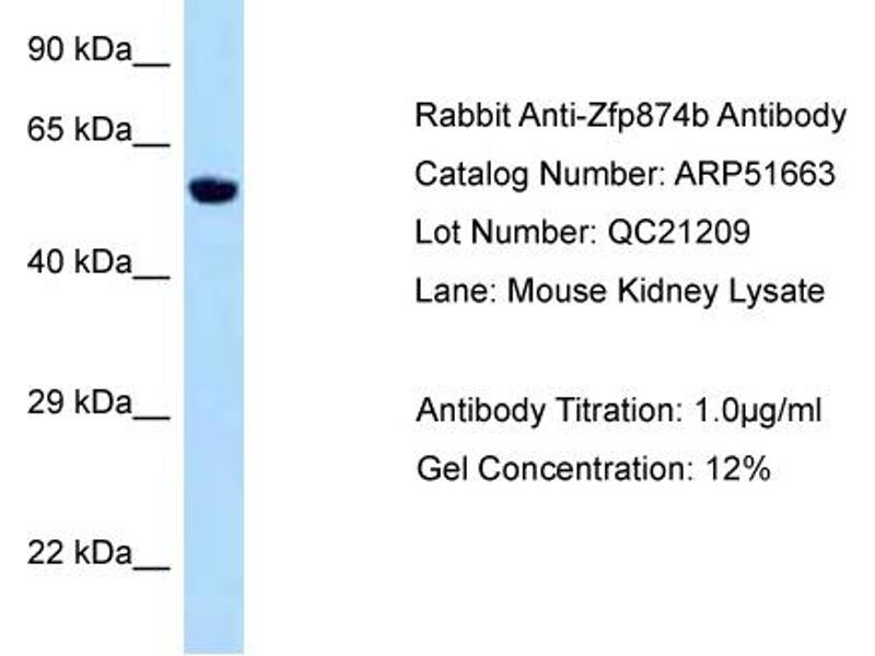 - This is a rabbit polyclonal antibody against Zfp874b. It was validated on Western Blot.
