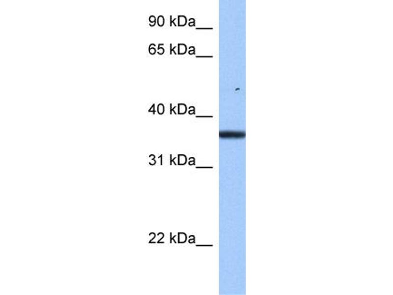 - The immunogen is a synthetic peptide directed towards the middle region of human LOC202134