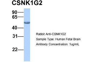- This is a rabbit polyclonal antibody against CSNK1G2. It was validated on Western Blot using a cell lysate as a positive control.
