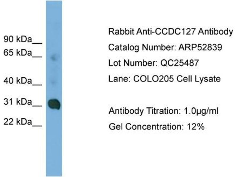 - This is a rabbit polyclonal antibody against CCDC127. It was validated on Western Blot using a cell lysate as a positive control.