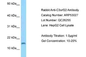 - This is a rabbit polyclonal antibody against C3orf22. It was validated on Western Blot.