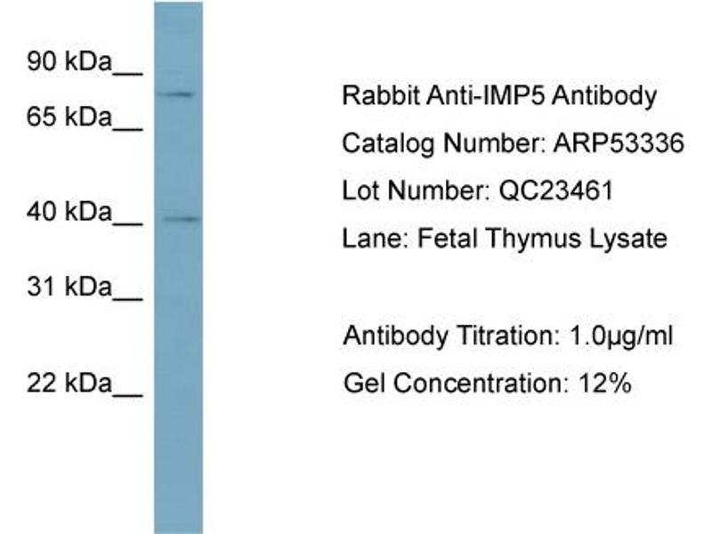 - This is a rabbit polyclonal antibody against IMP5. It was validated on Western Blot using a cell lysate as a positive control.
