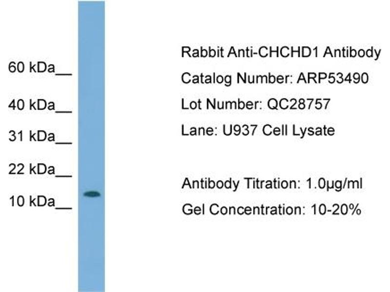 - This is a rabbit polyclonal antibody against CHCHD1. It was validated on Western Blot using a cell lysate as a positive control.