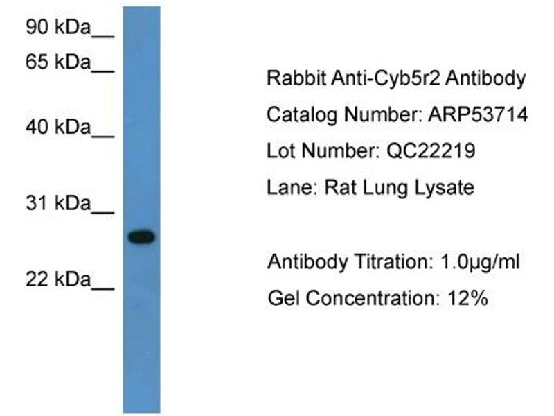 This is a rabbit polyclonal antibody against Cyb5r2. It was validated on Western Blot.