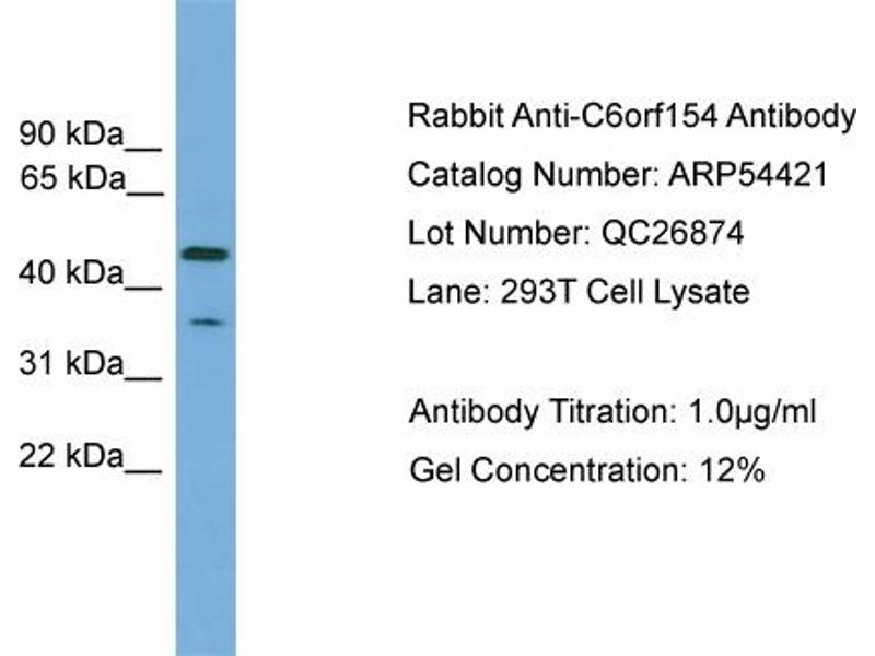 - This is a rabbit polyclonal antibody against C6orf154. It was validated on Western Blot.
