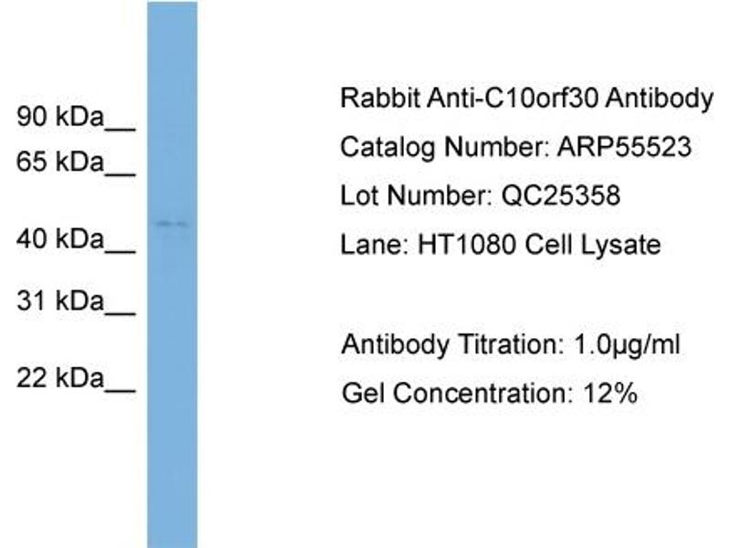- This is a rabbit polyclonal antibody against C10orf30. It was validated on Western Blot using a cell lysate as a positive control.