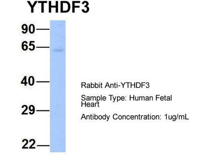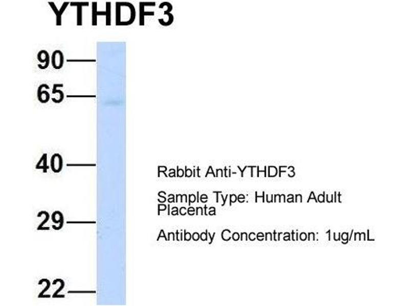 - This is a rabbit polyclonal antibody against YTHDF3. It was validated on Western Blot using a cell lysate as a positive control.