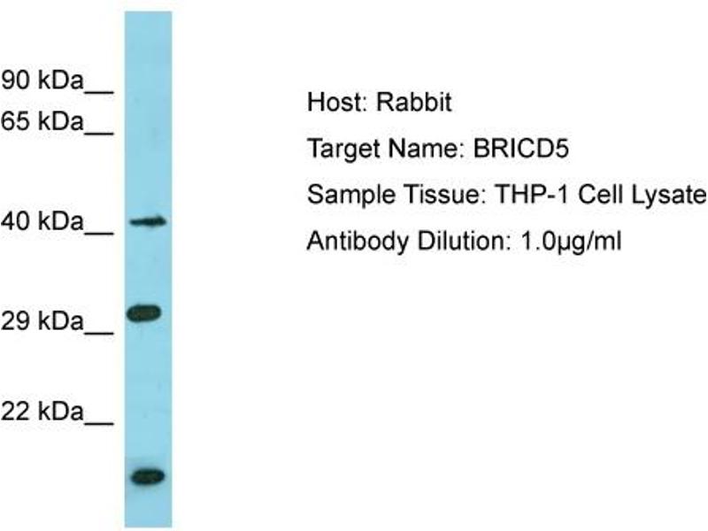 This is a rabbit polyclonal antibody against BRICD5. It was validated on Western Blot.