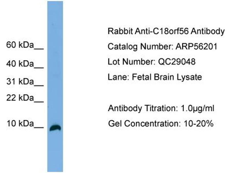 - This is a rabbit polyclonal antibody against C18orf56. It was validated on Western Blot.