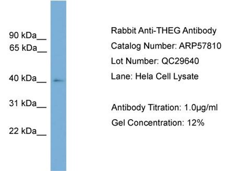- This is a rabbit polyclonal antibody against THEG. It was validated on Western Blot.