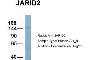 - This is a rabbit polyclonal antibody against JARID2. It was validated on Western Blot using a cell lysate as a positive control.
