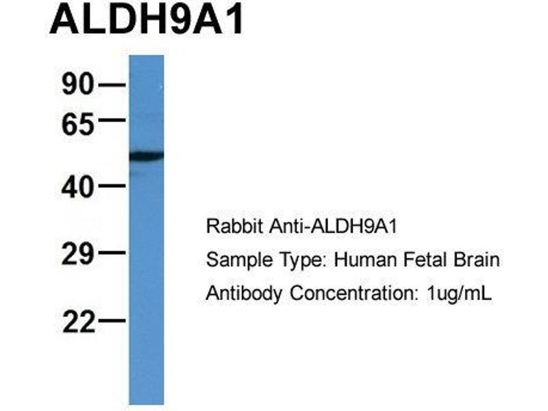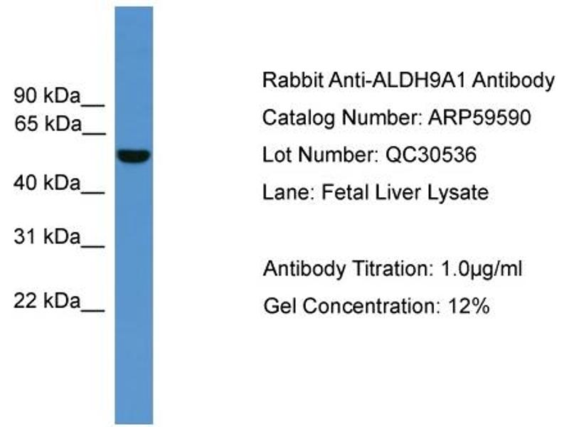 This is a rabbit polyclonal antibody against ALDH9A1. It was validated on Western Blot.