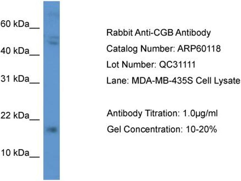 - This is a rabbit polyclonal antibody against CGB. It was validated on Western Blot.
