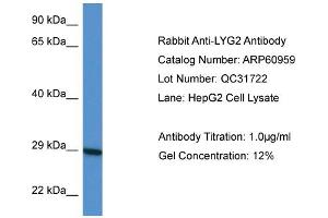 - This is a rabbit polyclonal antibody against LYG2. It was validated on Western Blot.