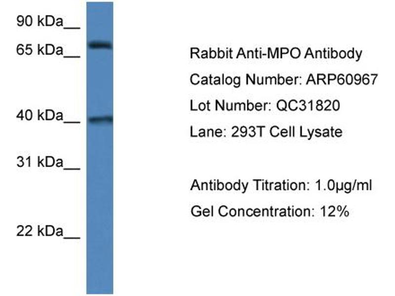- This is a rabbit polyclonal antibody against MPO. It was validated on Western Blot.