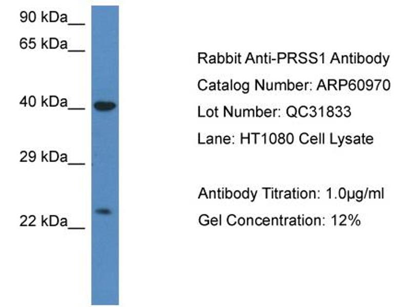 This is a rabbit polyclonal antibody against PRSS1. It was validated on Western Blot.