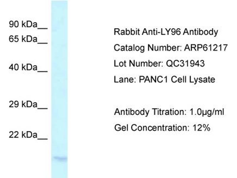- This is a rabbit polyclonal antibody against LY96. It was validated on Western Blot.