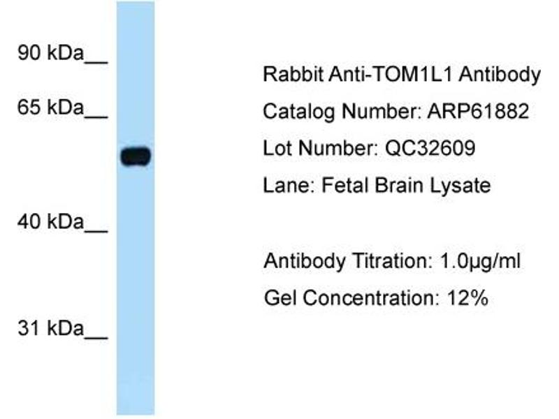 - This is a rabbit polyclonal antibody against TOM1L1. It was validated on Western Blot.
