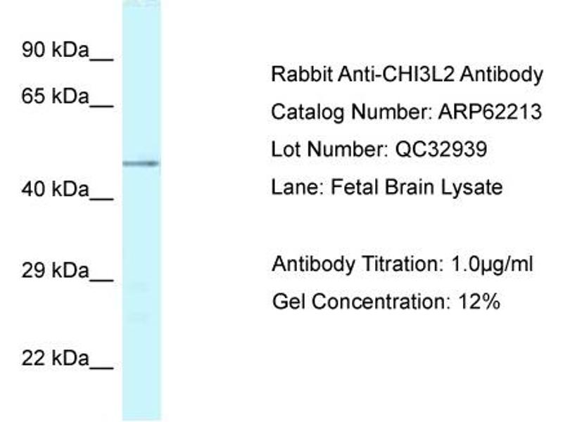 - This is a rabbit polyclonal antibody against CHI3L2. It was validated on Western Blot.
