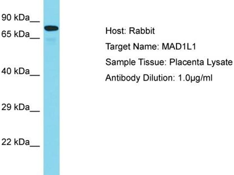 MAD1L1 is a component of the mitotic spindle-assembly checkpoint that prevents the onset of anaphase until all chromosome are properly aligned at the metaphase plate. MAD1L1 functions as a homodimer and interacts with MAD2L1. MAD1L1 may play a role in cell cycle control and tumor suppression. Three transcript variants encoding the same protein have been found for this gene. Alias Symbols: MAD1, PIG9, TP53I9, TXBP181 Protein Interaction Partner: CWF19L2, HAUS1, TSHZ3, CCDC94, ZSCAN32, CCHCR1, LGALSL, TRIM29, NEBL, USP15, SPATA2, BAG5, RNF8, TPM3, TPM1, PSMA1, MFAP1, TSC22D3, ALOX5, MAD2L1, TRIP13, UBC, TPR, CDC20, ZZEF1, FLNB, SIN3A, METTL21C, ZW10, MAD2L1BP, COIL, CDC27, NRD1, Cdk1, MNT, AMOTL2, Protein Size: 718