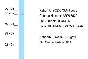 - This is a rabbit polyclonal antibody against CDC73. It was validated on Western Blot.