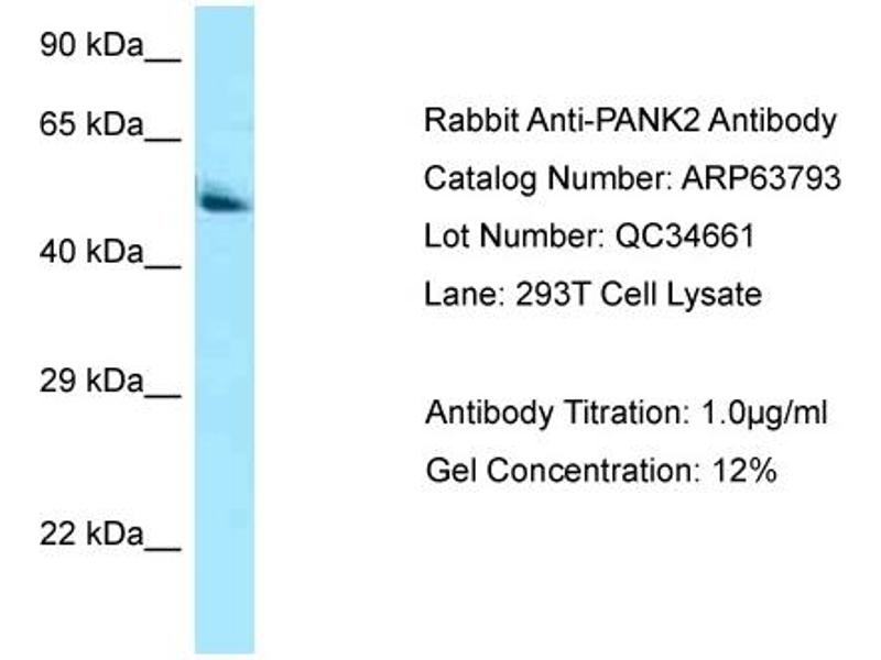This is a rabbit polyclonal antibody against PANK2. It was validated on Western Blot.