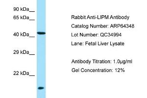 - This is a rabbit polyclonal antibody against LIPM. It was validated on Western Blot.