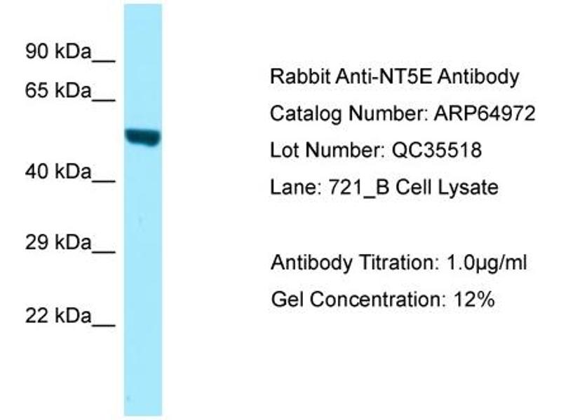 This is a rabbit polyclonal antibody against NT5E. It was validated on Western Blot.