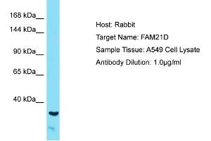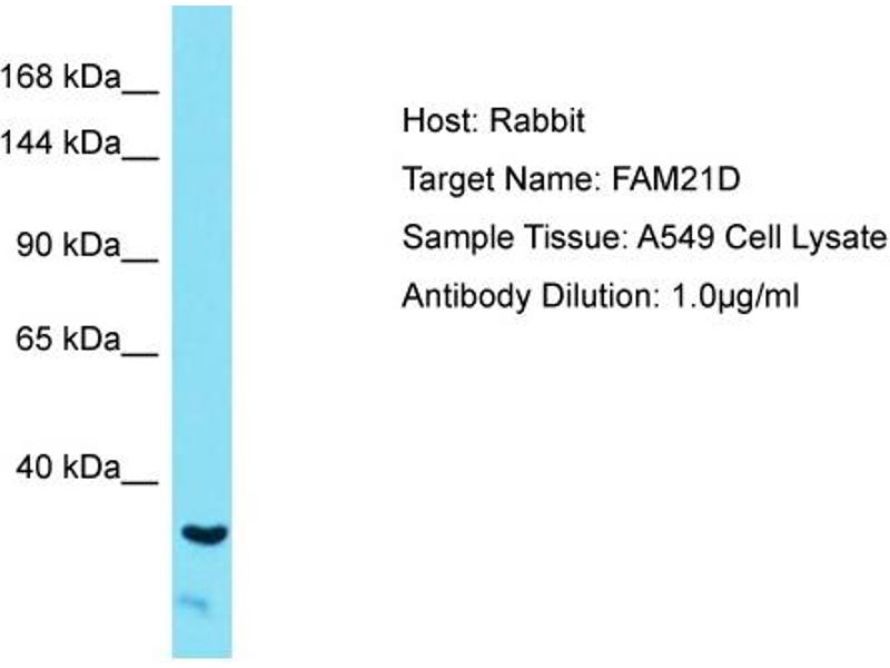 This is a rabbit polyclonal antibody against FAM21D. It was validated on Western Blot.