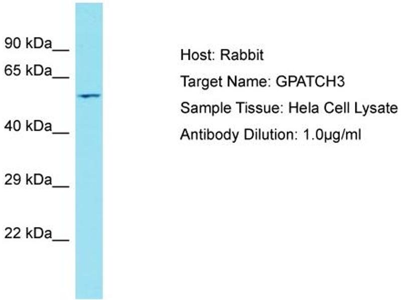 This is a rabbit polyclonal antibody against GPATCH3. It was validated on Western Blot.