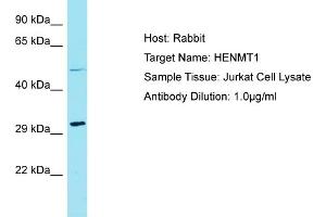 This is a rabbit polyclonal antibody against HENMT1. It was validated on Western Blot.