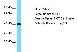 This is a rabbit polyclonal antibody against NBPF5. It was validated on Western Blot.