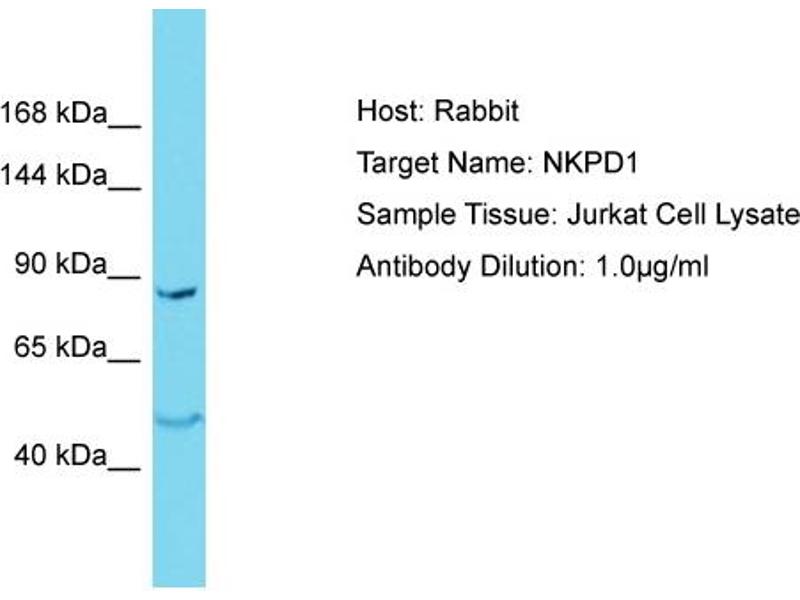 This is a rabbit polyclonal antibody against NKPD1. It was validated on Western Blot.