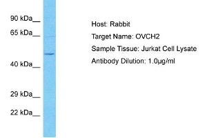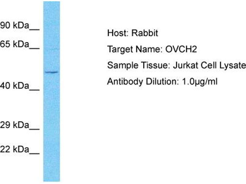 This is a rabbit polyclonal antibody against OVCH2. It was validated on Western Blot.