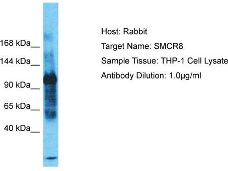 This is a rabbit polyclonal antibody against SMCR8. It was validated on Western Blot.