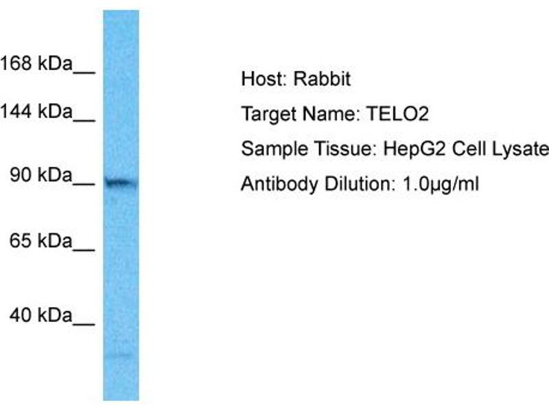 This is a rabbit polyclonal antibody against TELO2. It was validated on Western Blot.