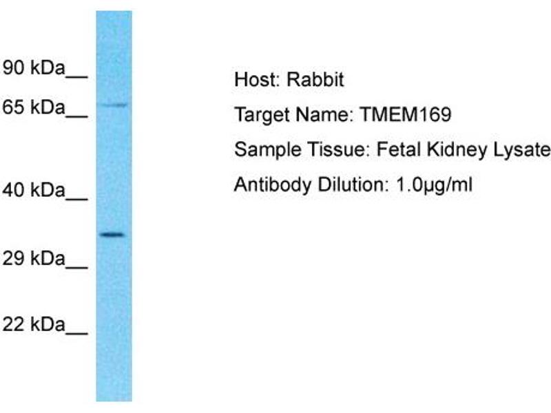 This is a rabbit polyclonal antibody against TMEM169. It was validated on Western Blot.