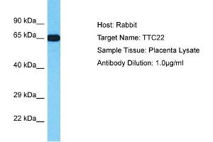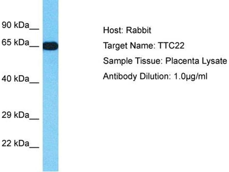 This is a rabbit polyclonal antibody against TTC22. It was validated on Western Blot.