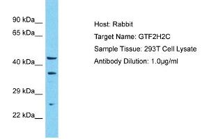 Cet anticorps Lapin Polyclonal détecte spécifiquement GTF2H2C dans WB. Il présente une réactivité envers Humain, Rat, Souris, Boeuf (Vache), Chien, Cobaye, Cheval, Lapin et Poisson zèbre (Danio rerio).