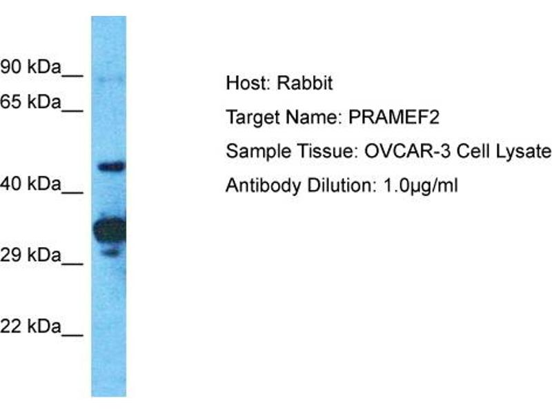 This is a rabbit polyclonal antibody against PRAMEF2. It was validated on Western Blot.
