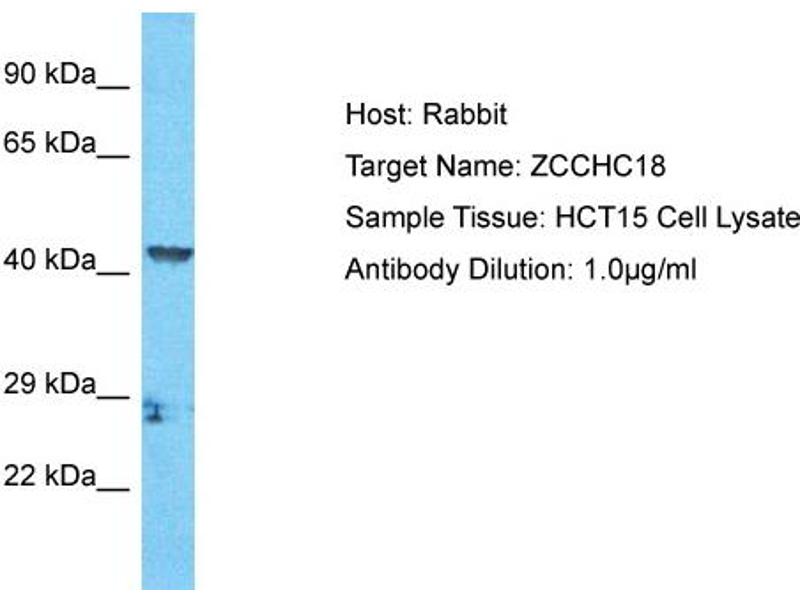 This is a rabbit polyclonal antibody against ZCCHC18. It was validated on Western Blot.