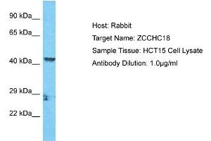 The immunogen is a synthetic peptide directed towards the C-terminal region of Human ZCCHC18