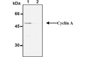 - This antibody reacts with Cyclin A (55 kDa).