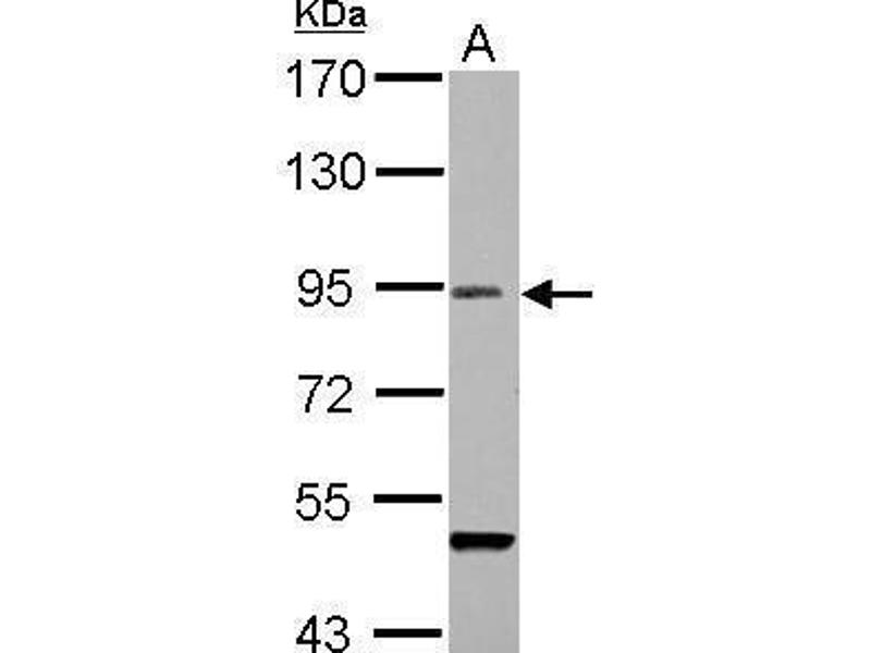 - Carrier-protein conjugated synthetic peptide encompassing a sequence within the C-terminus region of human RanBP9. The exact sequence is proprietary.